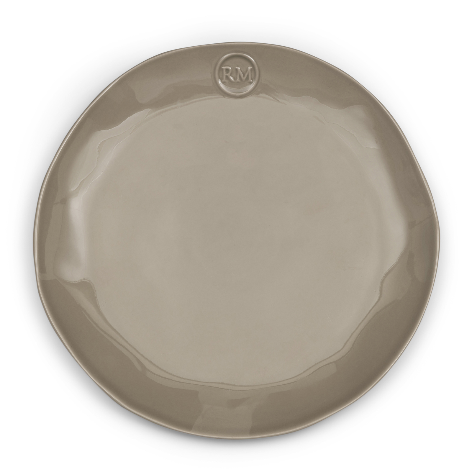 Keraaminen lautanen RM-logolla.