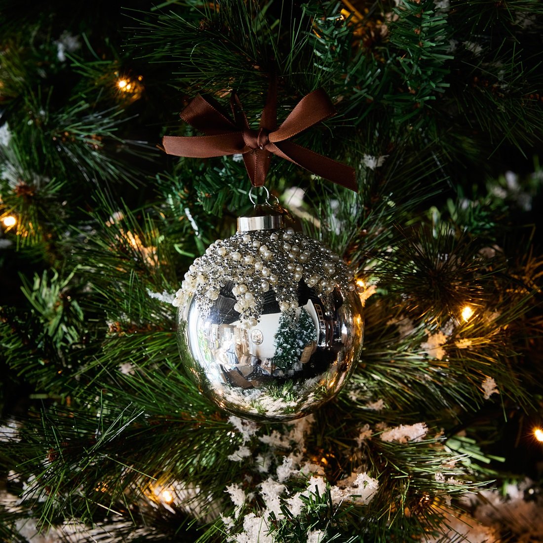 Pallon pinta peilaava, yläosa on päällystetty helmillä.