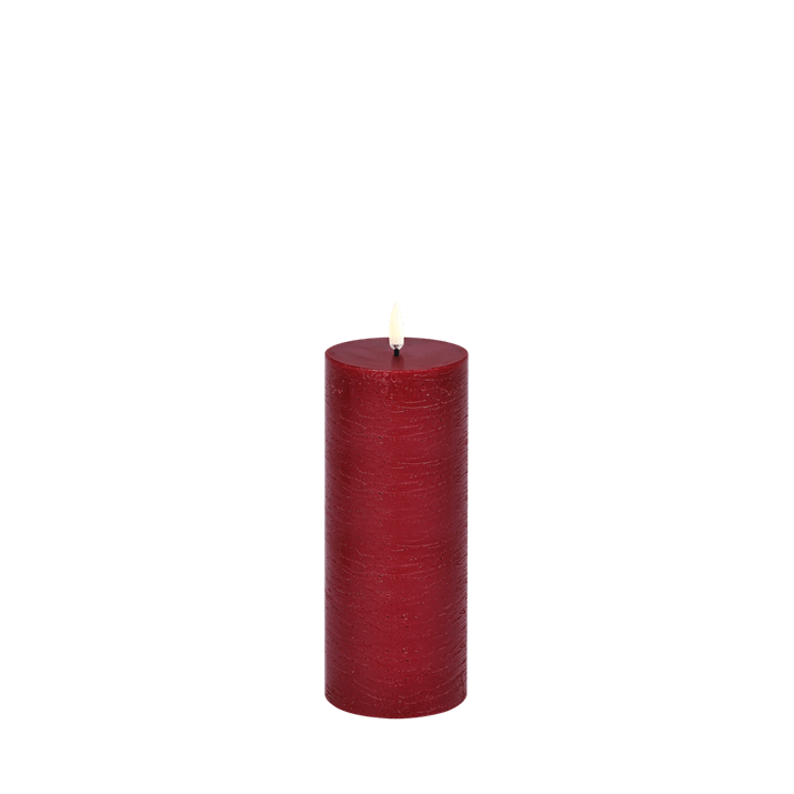 Punainen kynttilä LED-liekillä. Liekki on palaessaan erittäin aidonnäköinen ja hohtaa kauniisti kynttilän pinnassa.