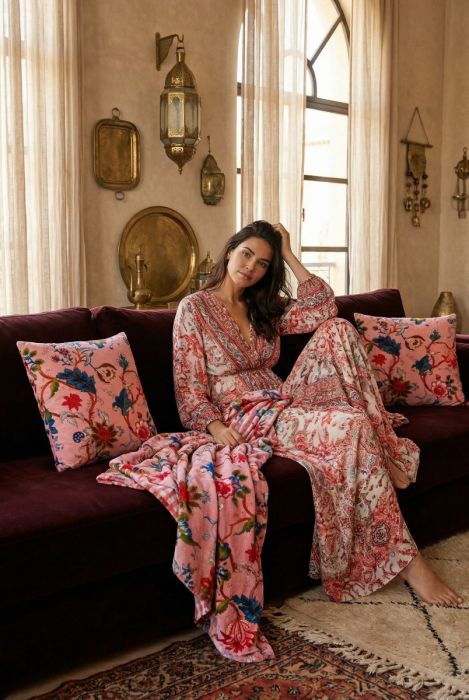 Kuviolinen samettityyny.