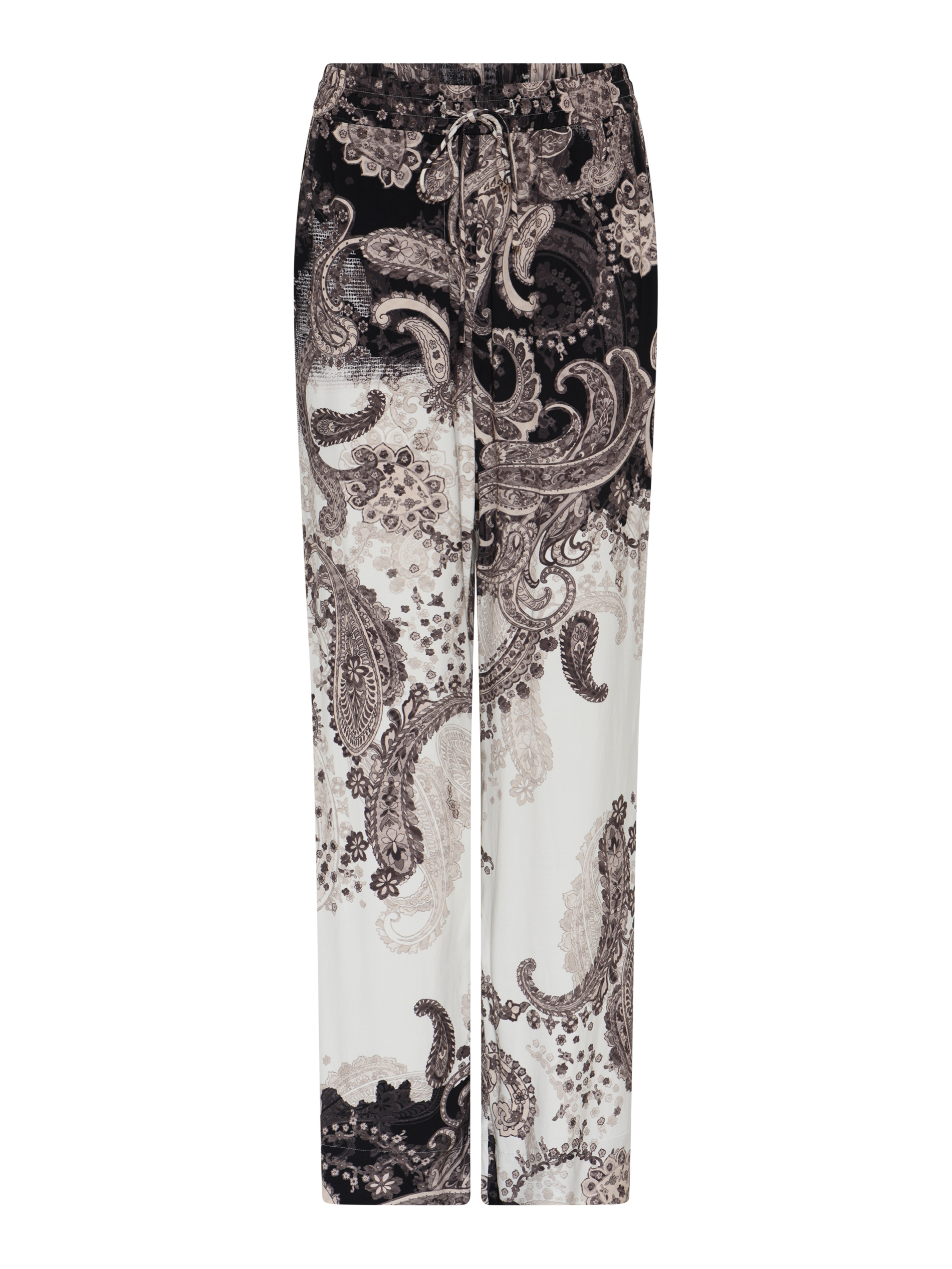 Vyötäröllä venyvä kuminauha ja kiristynyöri.