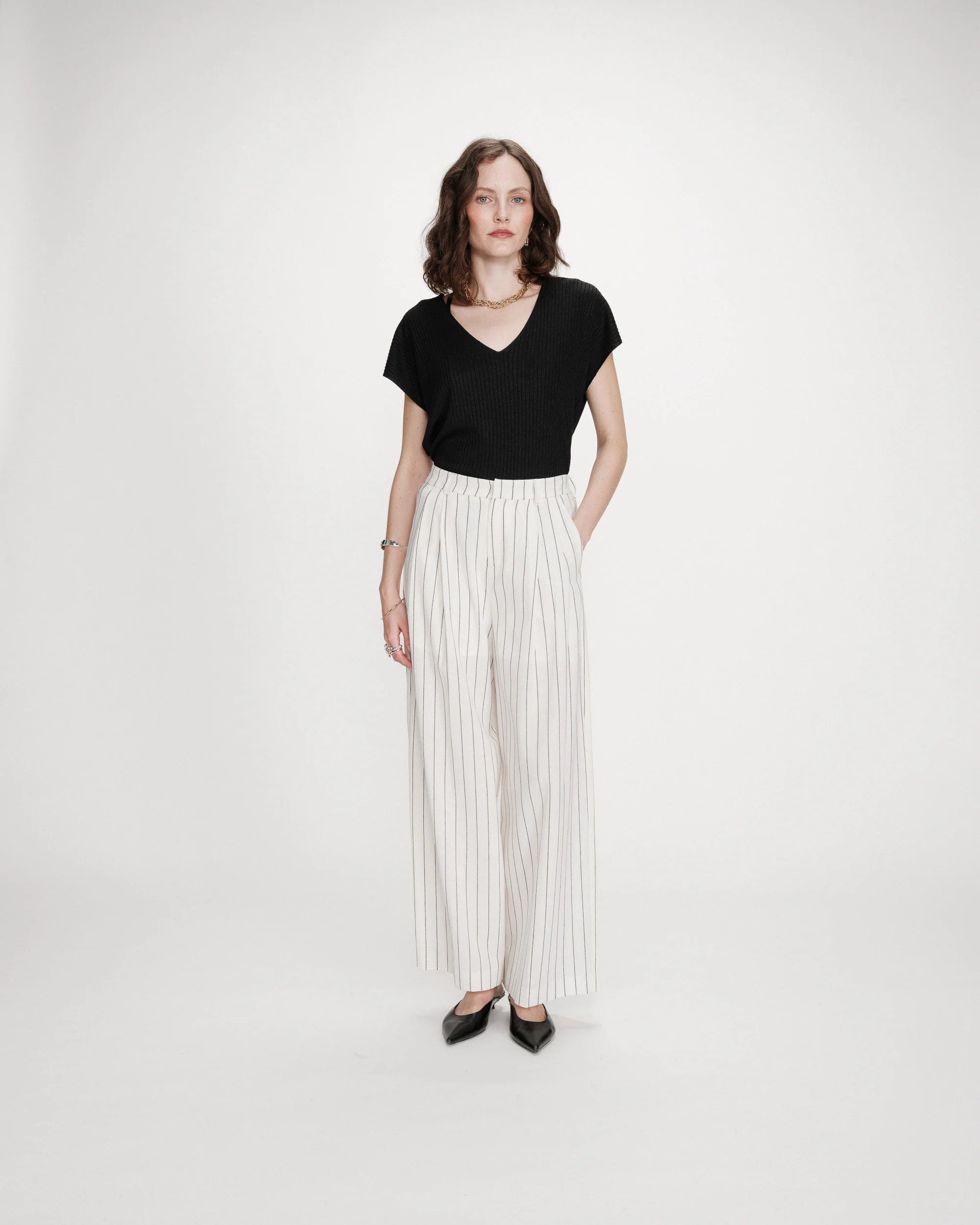 Pystyraidalliset housut.