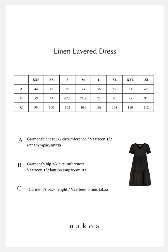 Pellava tuntuu ihoa vasten mukavan hengittävältä ja kevyeltä. Kerrokset toimivat viehättävänä yksityiskohtana ja luovat kauniin siluetin.