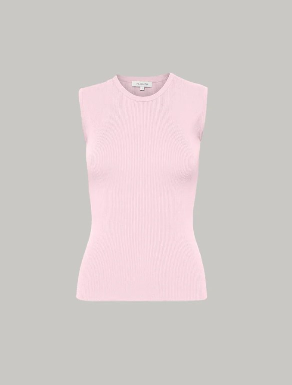 Hihaton ribbitoppi, jossa istuva siluetti ja leveät olat.
