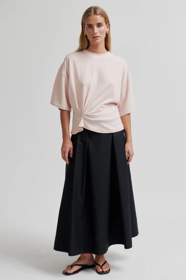 47% lyocelliä., 41% puuvillaa ja 12% elastaania. Pesu 30-asteessa.